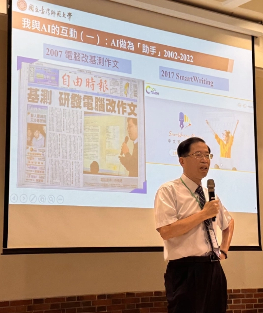 The first keynote session was delivered by Lifetime Chair Professor Yi-Bing, Lin under the theme “Integrating AI into Teaching.” Professor Lin pointed out that the current education system no longer meets the demands of the AI era. He emphasized the critical importance of human abilities such as asking the right questions, logical reasoning, and imagination. Through a variety of teaching examples—including applications in music, visual media, and animation—he demonstrated the rich resources AI can offer while also cautioning that AI-generated content is not infallible and may contain inaccuracies.