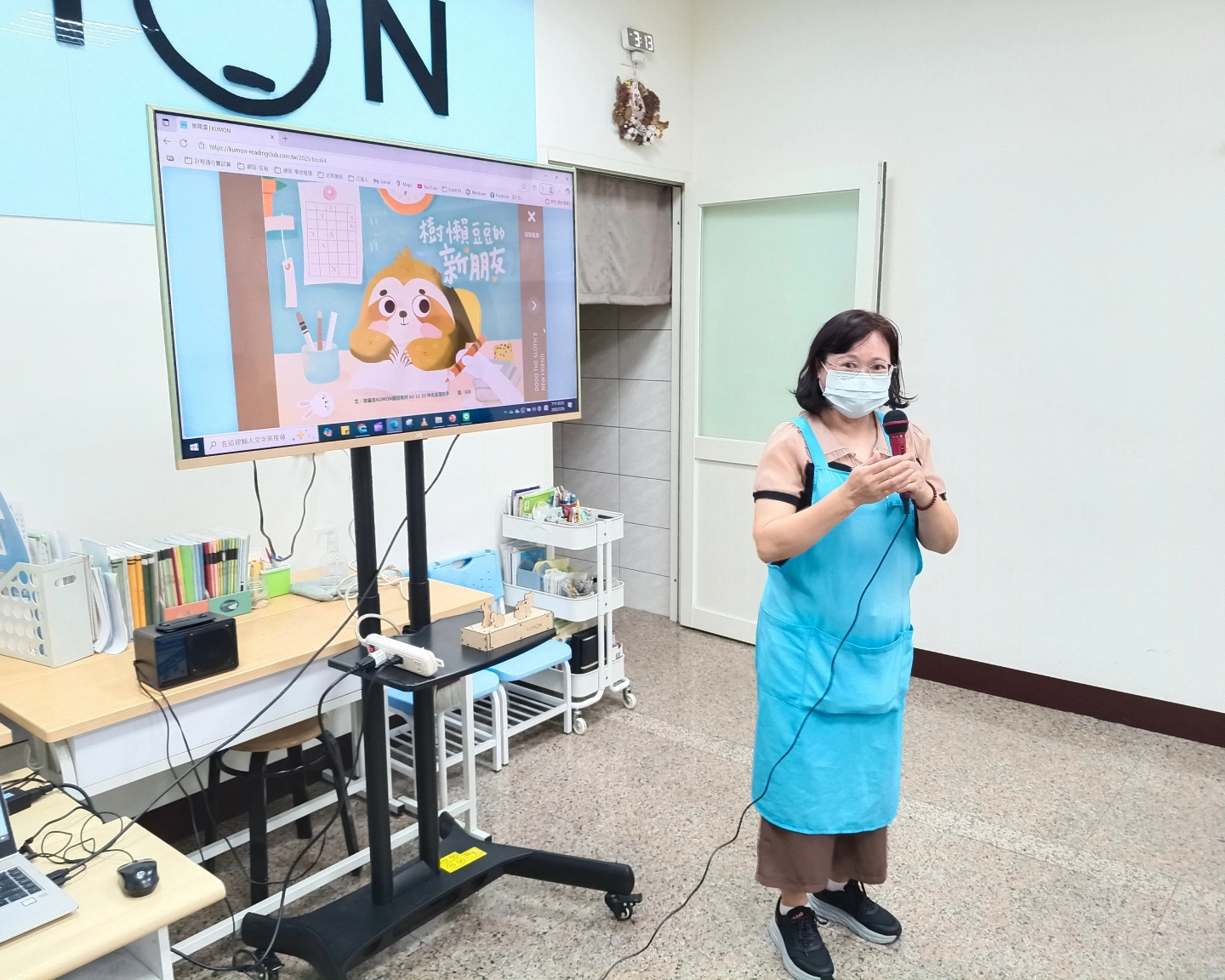 老師帶著大家閱讀KUMON繪本《樹懶豆豆的新朋友》,故事中小朋友們一起見證豆豆如何從害羞內向,慢慢變得勇敢,並踏出交朋友的第一步。