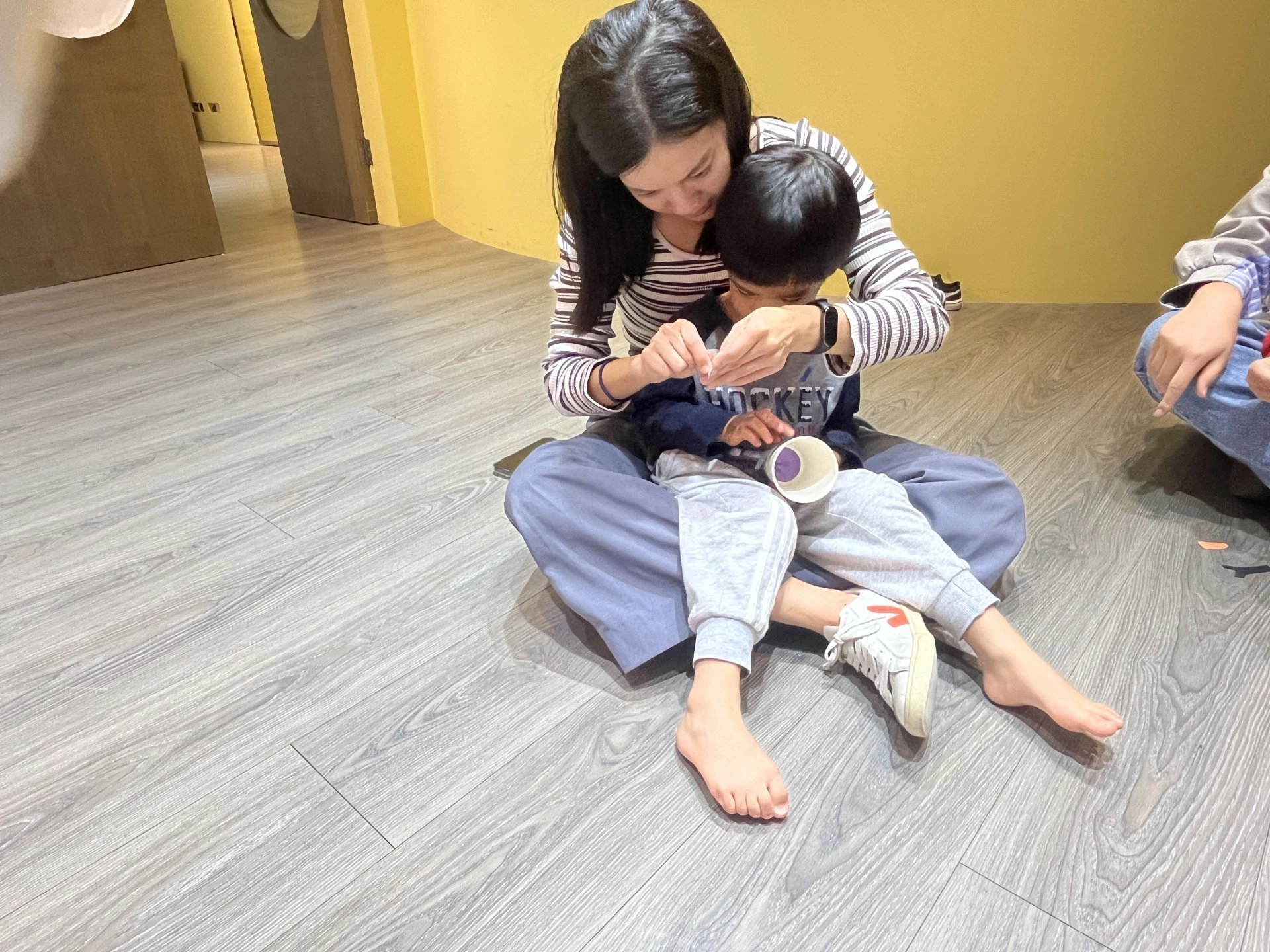 活動結束前,不知不覺地「下雪」了!原來...是Fenny老師設計的「snowflake小機關」,小朋友樂而忘返,每個小小笑容都充滿幸福感 💛