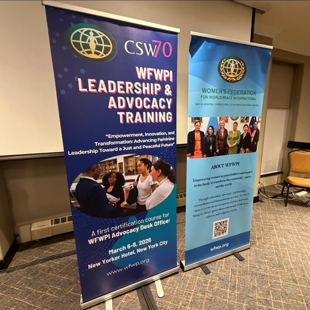 財團法人功文文教基金會於3月6日至3月8日,赴美國紐約參與由世界和平婦女會國際總會(WFWPI)舉辦之CSW70倡議培力課程。透過為期三天的密集訓練,深化本會在國際倡議、女性領導力及永續發展等議題上的專業能力。