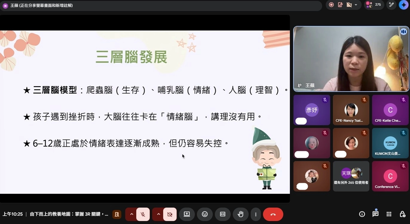 由功文文教基金會主辦、孔孟文化事業有限公司、臺北市私立功文雪泥幼兒園、臺北市私立功文成長幼兒園協辦之「親職教育及兒童發展講座」,於4月22日順利舉行。本次講座以《由下而上的教養地圖:掌握3R關鍵,玩出孩子的情緒力》為主題,帶領家長從兒童發展與大腦運作的角度,重新理解孩子的情緒行為,並學習以更有效的方式陪伴與回應。