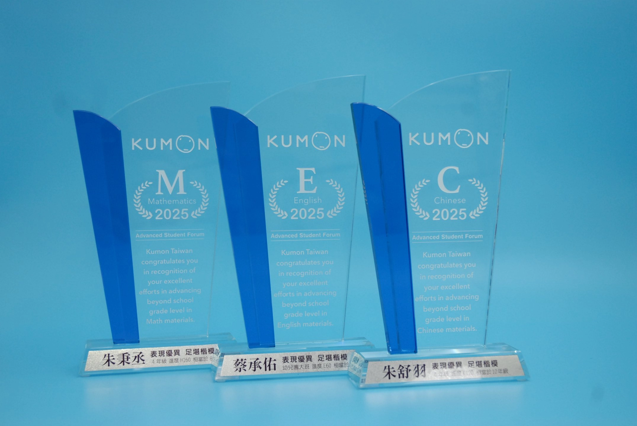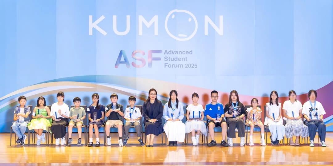 全球 KUMON 每年於各地舉辦超越學年優秀生表彰活動——ASF(Advanced Student Forum),公開表揚達到「超越四個學年以上」的優秀學子。此獎項不僅肯定孩子們持續挑戰的毅力與精神,也期許所有學子都能朝著完成最高、最終教材的目標穩健邁進。